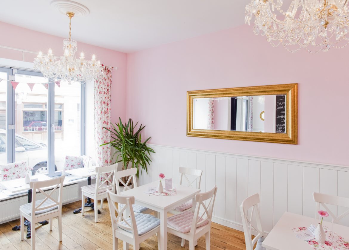 Nachdem ich das Café Lotti schon seit einiger Zeit immer wieder auf Facebook entdeckt habe, konnte ich letzte Woche endlich selbst in das entzückende, süße Café in der Schleißheimer Str. 13 gehen. Mit einer Freundin wollte ich dort meine Mittagspause verbringen und an einem Referat für die nächste Vorlesung arbeiten. Ich muss sagen, mein toller Eindruck, den ich schon auf der Facebook Seite des Cafés gewinnen konnte, hat sich mehr als nur bestätigt. Ich habe selten ein Café besucht, in dem fast schon perfektionistisch ein großartiges Konzept umgesetzt wurde. Das Café Lotti bietet für Frauen nicht nur ein nettes Café zum quatschen und Kaffee trinken, sondern ein zweites Zuhause, wohnzimmerähnlich mit verspielten Details die sich jede Frau sicherlich schon einmal gewünscht hat. Die Wände sind rosa, es hängen Kronleuchter von der Decke und das weiße Sofa mit geblümten Kissen lässt einen in eine rosarote Wolke aus Mädchenträumen fallen. Es ist einfach zu süß! Fast schon kitschig, aber das im positiven Sinne!!