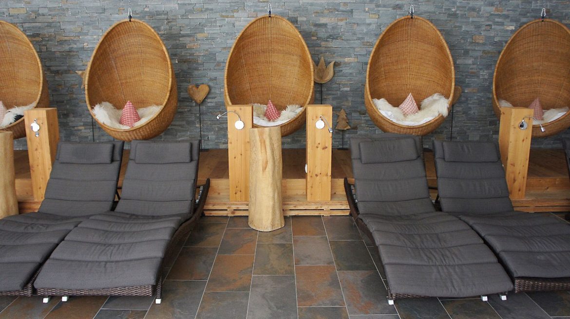 Das wir bereits so früh losgefahren sind, hatte natürlich einen Grund. Im Hubertus zählen Anreisetage als volle Urlaubstage. Bereits am ersten Tag kann man das üppige Frühstück und das vegetarische Lunchbuffet genießen. Nach dem heiß ersehnten Frühstück ließen wir es uns erst mal im Wellnessbereich gutgehen. Hier gibt es einfach alles, was das Herz begehrt: Einen ganzjährig beheizten Außenpool, verschiedene Saunen, ein Dampfbad, Fußbäder und einen Fußreflexzonen Parkour – auf 1044 Metern über dem Meeresspiegel.