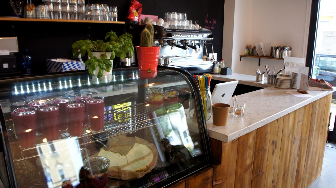 Die LAX EATERY in der Neureutherstraße 1, Ecke Barerstraße überzeugt auf Anhieb durch ein wunderbares, industriell-angehauchtes Ambiente mit Los Angeles Charakter. Es laden kleine Hocker, Stühle aber auch eine große Sitzbank zum Verweilen ein. Während der Blick durch den Raum schweift, fallen vor allem die kleinen Details auf, die den Laden so charmant machen. Eine Schwingtür erinnert an eine Strandkabine, Blechschilder wecken Reiselüste und die Glühbirnen, die von der Decke hängen verpassen dem Restaurant einen industriellen Touch. Ein Highlight der LAX EATERY ist auf jeden Fall die große Holztheke, die vor einer großen schwarzen Tafelwand steht. Hier werden köstliche Smoothies, Kuchen und Acai Bowls präsentiert. Die Kaffeemaschine hinter dem Tresen verspricht schon alleine vom Anblick her den besten Kaffee.