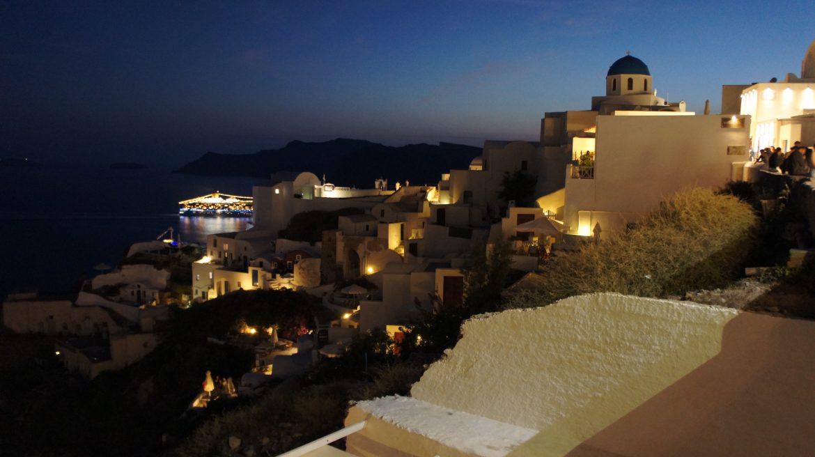 Um 17 Uhr nahmen wir täglich den Hotel Bus in die fünf Minuten entfernte Stadt Fira. Dort wählten wir zwischen den vielen Restaurants das mit dem schönsten Meerblick aus und bestellten alles, worauf wir gerade Lust hatten. Es war wie im Paradies! Während wir uns den Wein uns das leckere Essen schmecken ließen, beobachteten wir jeden Abend wie die Sonne im Meer versank und waren einfach nur glücklich.